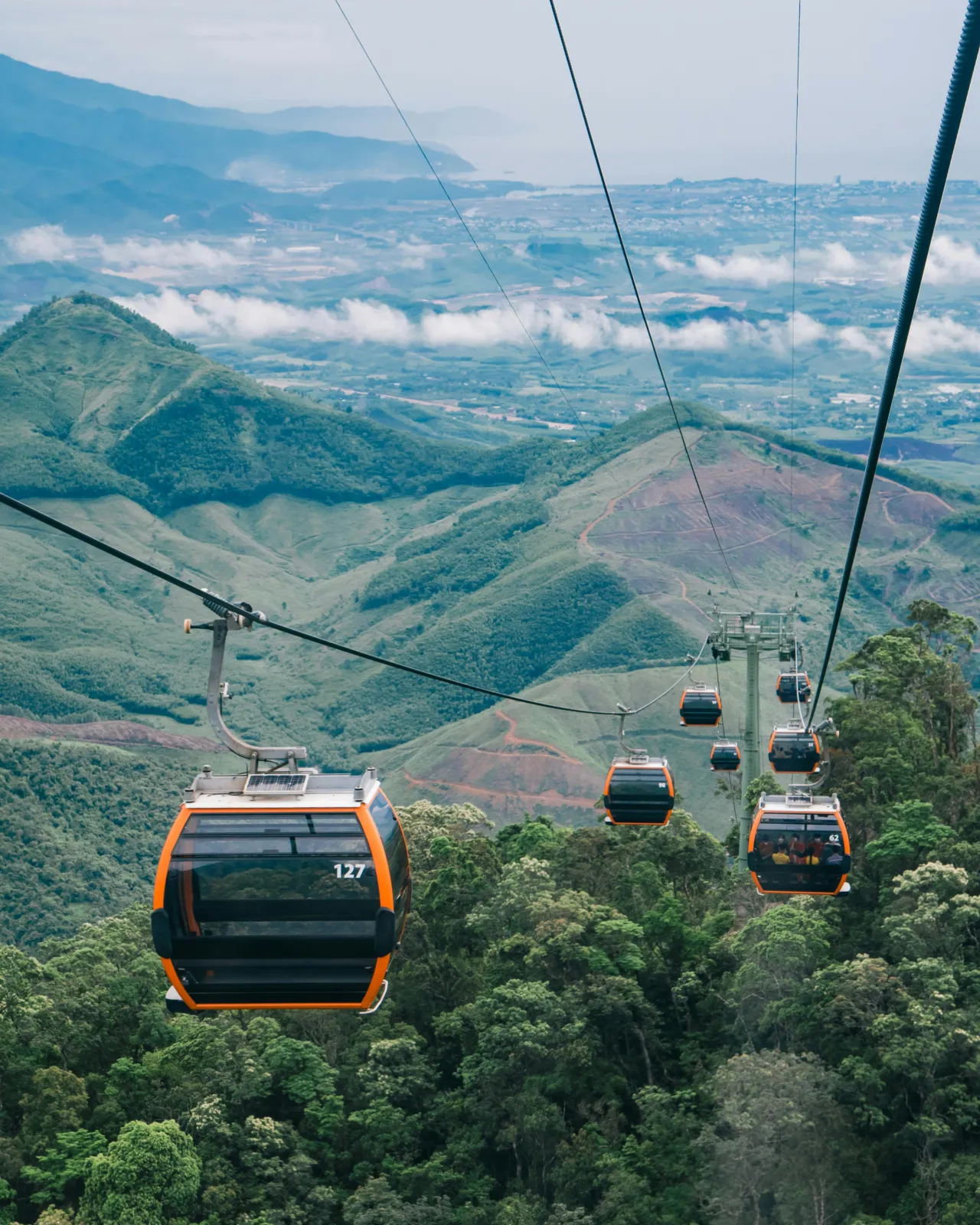 Ride the scenic Ba Na Hills cable car with panoramic mountain views